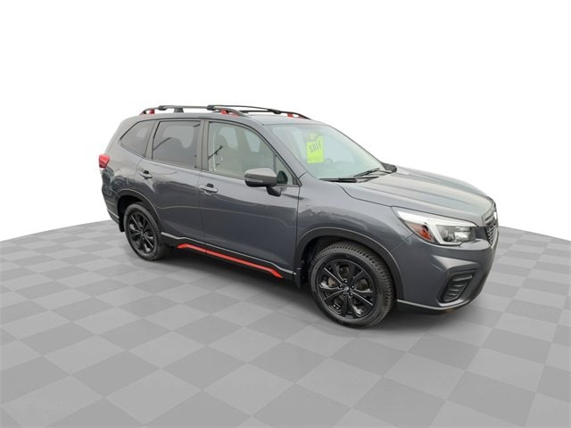 2021 Subaru Forester Sport, 4 Door Sport Utility, 2.5L 4-Cylinder DOHC 16V VVT, All Wheel Drive, Magnetite Gray Metallic, 3.70 Axle Ratio, 4-Wheel Disc Brakes, 6 Speakers, ABS brakes, Aero Crossbar Set, Air Conditioning, All-Weather Floor Liners, Alloy wheels, AM/FM radio: SiriusXM, Audio System & Reverse Auto Brake & Power Rr Gate, Auto High-beam Headlights, Auto-Dimming Exterior Mirror w/Approach Lighting, Auto-Dimming Mirror w/Compass & HomeLink, Automatic temperature control, Brake assist, Bumpers: body-color, Cargo Net, CD player, Driver door bin, Driver vanity mirror, Dual front impact airbags, Dual front side impact airbags, Electronic Stability Control, Emergency communication system: STARLINK Safety and Security (Subscription Required), Exterior Parking Camera Rear, Four wheel independent suspension, Front anti-roll bar, Front Bucket Seats, Front Center Armrest, Front fog lights, Front reading lights, Fully automatic headlights, harman kardon 576W Amp & Speaker System, Heated door mirrors, Heated Front Bucket Seats, Heated front seats, Illuminated entry, Knee airbag, Leather Shift Knob, Low tire pressure warning, Occupant sensing airbag, Outside temperature display, Overhead airbag, Overhead console, Paddle-Shift Control Switches, Panic alarm, Passenger door bin, Passenger vanity mirror, Popular Package #2, Power door mirrors, Power driver seat, Power moonroof: Panoramic, Power Rear Gate w/Automatic Close & Height Memory, Power steering, Power windows, Radio data system, Radio: Subaru Starlink 6.5 Multimedia Plus System, Radio: Subaru Starlink 8.0 Multimedia Plus System, Rear anti-roll bar, Rear Bumper Cover, Rear seat center armrest, Rear Seatback Protector, Rear window defroster, Rear window wiper, Remote keyless entry, Reverse Automatic Braking System (RAB), Roof rack: rails only, Security system, Speed control, Speed-sensing steering, Splash Guards, Split folding rear seat, Spoiler, Sport Cloth Upholstery, STARLINK/Apple CarPlay/Android Auto, Steering wheel mounted audio controls, Tachometer, Telescoping steering wheel, Tilt steering wheel, Traction control, Trip computer, Turn signal indicator mirrors, Variably intermittent wipers, Wheels: 18 x 7.0J Black Finish Aluminum Alloy, Bluetooth, Backup Camera, All Wheel Drive, Heated seats, Sunroof, Alloy wheels, Power driver seat, Sprot Package, Forester Sport, 4D Sport Utility, 2.5L 4-Cylinder DOHC 16V VVT, AWD, Magnetite Gray Metallic. Magnetite Gray Metallic 2021 Subaru Forester Sport AWD Lineartronic CVT 2.5L 4-Cylinder DOHC 16V VVT