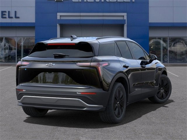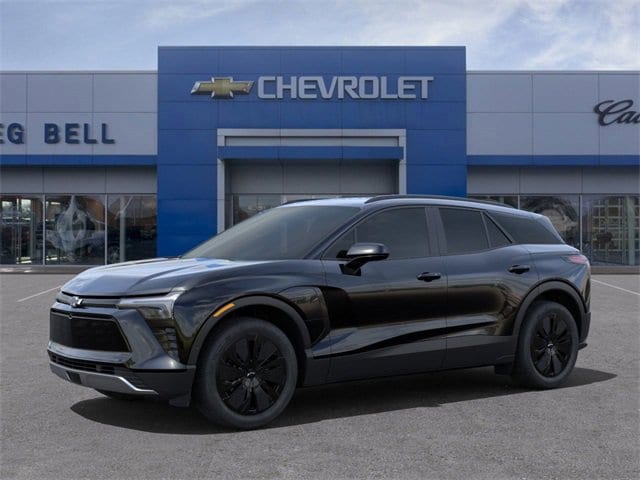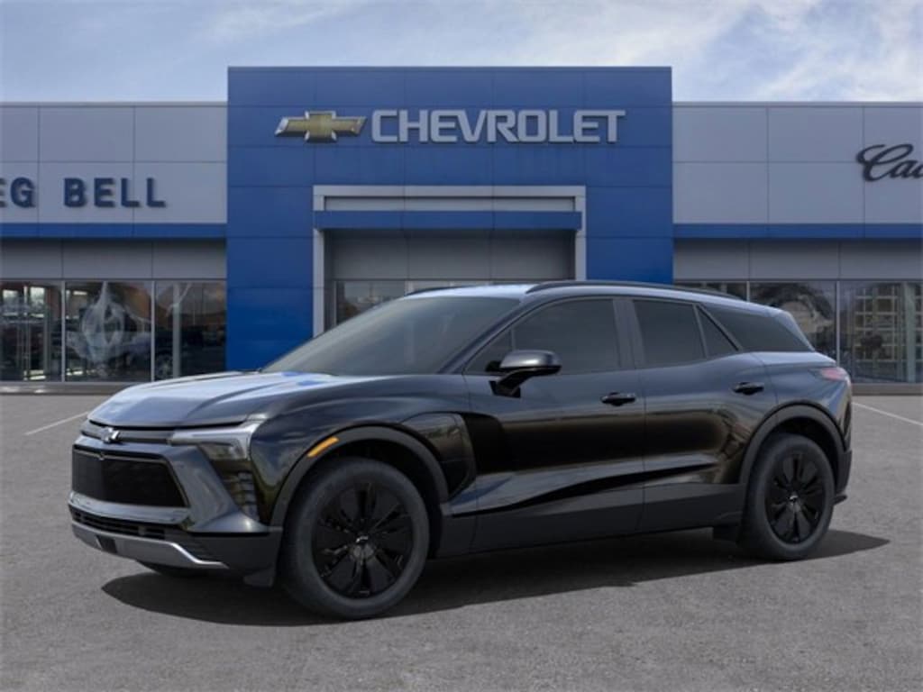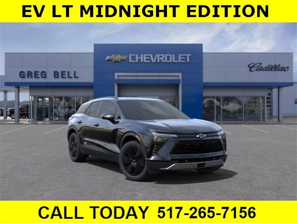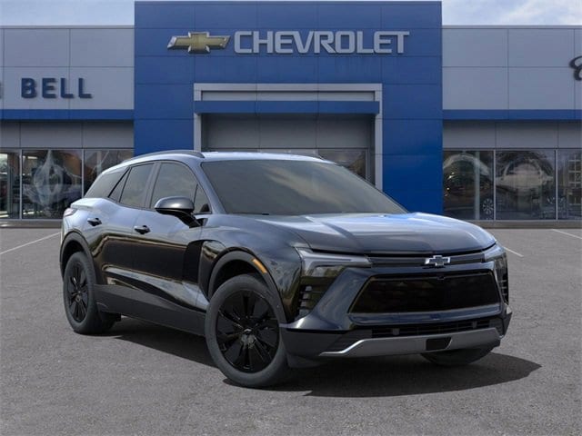 Black 2025 Chevrolet Blazer EV LT AWD 1-Speed Automatic Electric Motor 2-Way Power Driver Lumbar Seat Adjuster, 2-Way Power Passenger Lumbar Seat Adjuster, 4-Wheel Disc Brakes, 6 Speakers, 6-Speaker Audio System Feature, 6-Way Manual Driver Seat Adjuster, 6-Way Manual Front Passenger Seat Adjuster, 6-Way Power Passenger Seat Adjuster, 8-Way Power Driver Seat Adjuster, ABS brakes, Air Conditioning, Alloy wheels, All-Weather Cargo Mat (LPO) (DISC), All-Weather Floor Mats (LPO) (DISC), All-Weather Mat Package (LPO), AM/FM radio: SiriusXM with 360L, Auto High-beam Headlights, Automatic temperature control, Brake assist, Bumpers: body-color, Cloth Seat Trim, Comfort & Convenience Package, Compass, Delay-off headlights, Driver door bin, Driver vanity mirror, Dual front impact airbags, Dual front side impact airbags, Electronic Stability Control, Emergency communication system: OnStar and Chevrolet connected services capable, Evotex Seat Trim, Four wheel independent suspension, Front anti-roll bar, Front Bucket Seats, Front Center Armrest, Front reading lights, Fully automatic headlights, Heated Driver & Fr Passenger Seats Cushion & Seatback, Heated Steering Wheel, High Gloss Black Roof Rails, Hitch Guidance, Hitch View, Illuminated entry, Inside Rear-View Auto-Dimming Mirror, Knee airbag, Low tire pressure warning, Midnight/Sport Edition, Navigation System, Occupant sensing airbag, Outside temperature display, Overhead airbag, Overhead console, Panic alarm, Passenger door bin, Passenger vanity mirror, Power door mirrors, Power steering, Power windows, Power-Adjustable Power-Folding Heated Mirrors, Preferred Equipment Group 4LT, Programmable Hands Free AutoSense Power Liftgate, Radio: 17.7 Diagonal Advanced Color LCD Display, Rear anti-roll bar, Rear reading lights, Rear seat center armrest, Rear window defroster, Rear window wiper, Remote keyless entry, Ride & Handling Suspension, Security system, SiriusXM w/360L Trial Subscription, Speed control, Split folding rear seat, Spoiler, Steering wheel mounted audio controls, Telescoping steering wheel, Tilt steering wheel, Traction control, Trip computer, Variably intermittent wipers, Wheels: 19 Black Aluminum, Wheels: 19 Machined-Face Aluminum, Wireless Phone Charging, Wrapped Steering Wheel.