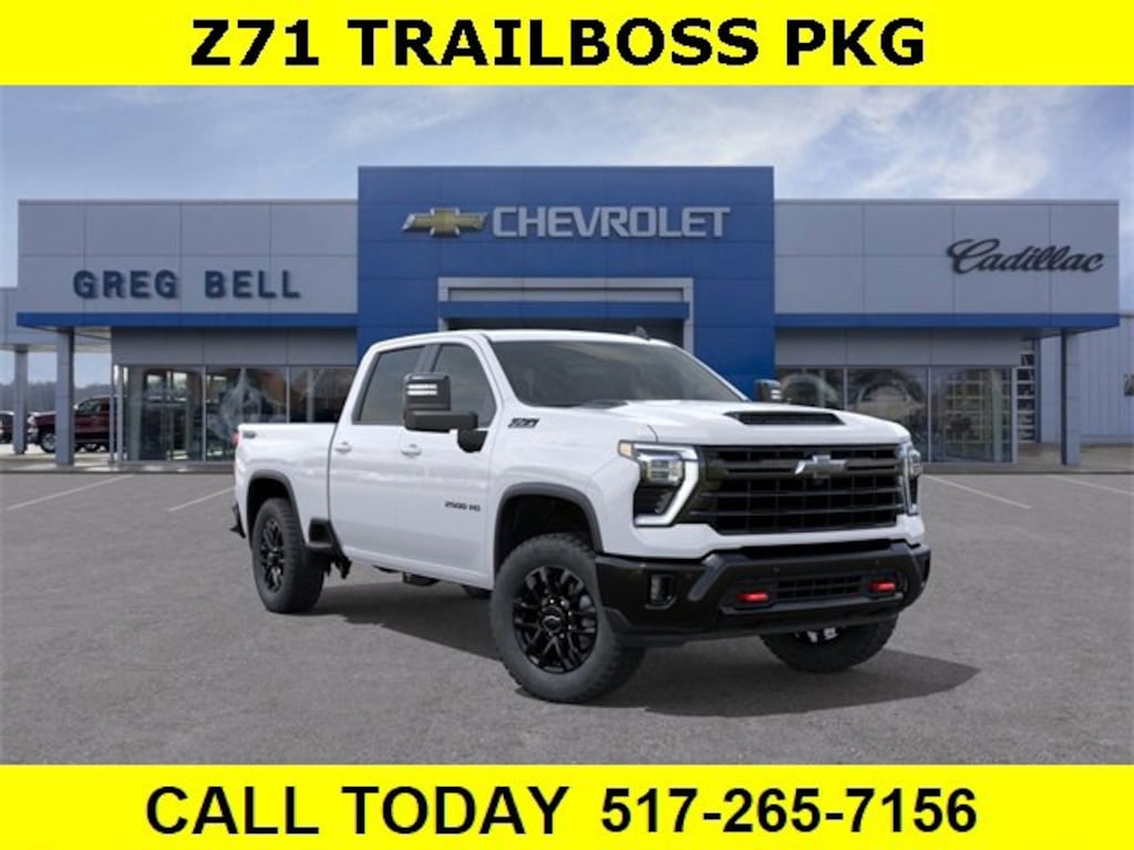 Summit White 2025 Chevrolet Silverado 2500HD LT 4WD 10-Speed Automatic 6.6L V8 10-Speed Automatic, 4WD, Black Cloth, 10-Way Power Driver Seat Adjuster w/Lumbar, 120-Volt Bed Mounted Power Outlet, 120-Volt Interior Power Outlet, 17 Machined Aluminum Wheels, 170 Amp Alternator, 2-Speed Electronic Shift Transfer Case, 3.73 Rear Axle Ratio, 4-Way Manual Driver Seat Adjuster, 4-Wheel Disc Brakes, 6 Speakers, 6-Speaker Audio System, 720 Cold-Cranking Amps Heavy-Duty Battery, ABS brakes, Air Conditioning, Alloy wheels, AM/FM radio: SiriusXM with 360L, Animated LED Projector Headlamps, Apple CarPlay/Android Auto, Auto High-beam Headlights, Auto-Dimming Inside Rear-View Mirror, Bed View Camera w/2 Trailer Camera Provisions, Black Chevytec Spray-On Bedliner, Black Grille Bar w/Chevy Black Bow Tie, Black Mirror Caps, Bluetooth® For Phone, Body-Color Front Bumper, Body-Color Rear Bumper, Brake assist, Bumpers: chrome, Chevrolet Connected Access Capable, Cloth Seat Trim, Color-Keyed Carpeting Floor Covering, Compass, Convenience Package, Deep-Tinted Glass, Delay-off headlights, Driver door bin, Driver vanity mirror, Dual front impact airbags, Dual front side impact airbags, Dual-Zone Automatic Climate Control, Durabed Pickup Bed, Electric Rear-Window Defogger, Electronic Cruise Control w/Set & Resume Speed, Electronic Stability Control, Emergency communication system: OnStar, EZ Lift Power Lock & Release Tailgate, Front 40/20/40 Split-Bench Seats w/Lockable Storage, Front anti-roll bar, Front Center Armrest w/Storage, Front Frame-Mounted Red Recovery Hooks, Front LED Fog Lamps, Front reading lights, Front Rubberized Vinyl Floor Mats, Front wheel independent suspension, Fully automatic headlights, Halogen Reflector Headlamps, HD Rear Vision Camera, HD Surround Vision, Heat Package, Heated & Auto-Dimming Vertical Trailering Mirrors, Heated door mirrors, Heated Driver & Front Outboard Passenger Seating, Heated Steering Wheel, Heated Vertical Trailering Mirrors, High Gloss Black Front Bumper, High Gloss Black Mirror Caps, High Gloss Black Rear Bumper, Hill Descent Control, Illuminated entry, In-Vehicle Trailering App System, Keyless Open & Start, LED Cargo Area Lighting, Low tire pressure warning, Manual Tilt & Telescoping Steering Column, Occupant sensing airbag, Off-Road Suspension, OnStar Services Capable, Outside temperature display, Overhead airbag, Overhead console, Panic alarm, Passenger door bin, Passenger vanity mirror, Power Door Locks, Power door mirrors, Power Front Windows w/Driver Express Up/Down, Power Front Windows w/Passenger Express Down, Power Rear Windows w/Express Down, Power steering, Power windows, Preferred Equipment Group 1LT, Premium audio system: Chevrolet Infotainment 3 Premium, Push Button Start, Radio: Chevrolet Infotainment 3 Premium System, Rear 60/40 Folding Bench Seat (Folds Up), Rear Cross Traffic Alert, Rear reading lights, Rear Rubberized Vinyl Floor Mats, Rear step bumper, Remote keyless entry, Remote Start Package, Remote Vehicle Starter System, Safety Package, SiriusXM w/360L Trial Subscription, Speed control, Split folding rear seat, Standard Tailgate, Steering Wheel Audio Controls, Steering wheel mounted audio controls, Suspension Package, Tachometer, Tilt steering wheel, Traction control, Trail Boss Package, Trailer Camera Provisions, Trailer Side Blind Zone Alert, Trip computer, Turn signal indicator mirrors, Ultrasonic Front & Rear Park Assist, Unauthorized Entry Theft-Deterrent System, Variably intermittent wipers, Voltmeter, Wheels: 20 High Gloss Black Painted, Wi-Fi Hotspot Capable, Wireless Phone Projection, Wrapped Steering Wheel, Z71 Off-Road Package, 10-Speed Automatic, 4WD, Black Cloth.