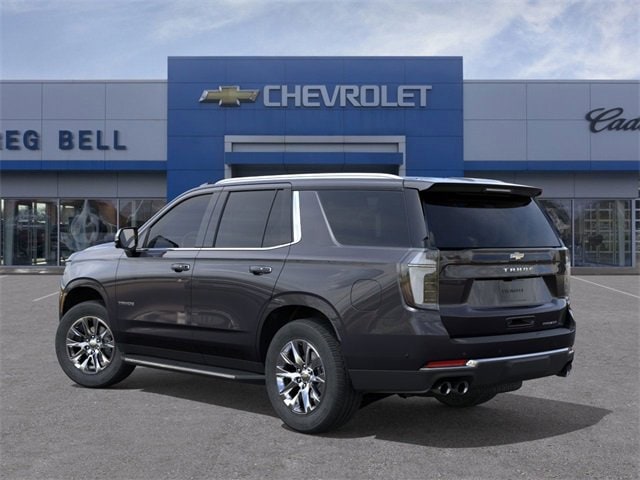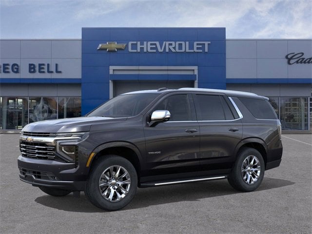 Dark Ash Metallic 2025 Chevrolet Tahoe Premier 4WD 10-Speed Automatic with Overdrive EcoTec3 5.3L V8 4WD, Gray Leather, 10 Speakers, 1st & 2nd Row Color-Keyed Carpeted Floor Mats, 2-Speed Active Electronic AutoTrac Transfer Case, 20 x 9 Polished Aluminum Wheels, 3-Spoke Wrapped Steering Wheel, 3.23 Rear Axle Ratio, 3rd Row 60/40 Power-Folding Split-Bench Seat, 3rd row seats: split-bench, 4-Way Power Driver Lumbar Seat Adjuster, 4-Way Power Front Passenger Lumbar Seat Adjuster, 4-Wheel Disc Brakes, 8-Way Power Driver Seat Adjuster, 8-Way Power Front Passenger Seat Adjuster, ABS brakes, Adaptive suspension, Advanced Trailering Package, Air Conditioning, Alloy wheels, AM/FM radio: SiriusXM with 360L, Apple CarPlay/Android Auto, Auto High-beam Headlights, Auto-dimming door mirrors, Auto-Dimming Inside Rear-View Mirror, Auto-dimming Rear-View mirror, Auto-leveling suspension, Automatic temperature control, Blind Zone Steering Assist w/Trailering, Bose 10-Speaker Centerpoint Surround Audio Sys Ft, Brake assist, Bright Front & Rear Door Sill Plates, Bumpers: body-color, Chrome Door Handles w/Body-Color Strip, Color-Keyed Carpeting Floor Covering, Compass, Delay-off headlights, Driver & Front Passenger Heated & Ventilated Seats, Driver door bin, Driver vanity mirror, Dual Exhaust System, Dual front impact airbags, Dual front side impact airbags, Dual-Pane Power Panoramic Sunroof, Electronic Stability Control, Emergency communication system: OnStar and Chevrolet connected services capable, Exterior Parking Camera Rear, Extra Capacity Cooling System, Floor Console, Four wheel independent suspension, Front anti-roll bar, Front Bucket Seats, Front Center Armrest, Front dual zone A/C, Front fog lights, Front LED Fog Lamps, Front Pedestrian & Bicyclist Braking, Front reading lights, Frontal Driver & Outboard Passenger Airbags, Fully automatic headlights, Garage door transmitter, Heated 2nd Row Outboard Seats, Heated door mirrors, Heated Driver & Front Passenger Seats, Heated front seats, Heated rear seats, Heated Steering Wheel, Heated steering wheel, Hill Descent Control, Hitch View w/Pan/Zoom Image Adjustment, Illuminated entry, Integrated Trailer Brake Controller, LED Headlamps w/LED Daytime Running Lamps, LED Tail Lamps, Low tire pressure warning, Magnetic Ride Control Suspension, Max Trailering Package, Memory seat, Memory Settings, Navigation system: Google built-in compatibility (select service plan required, terms and limitations apply), Occupant sensing airbag, Outside Heated Power-Adjustable Mirrors, Outside temperature display, Overhead airbag, Overhead console, Panic alarm, Passenger door bin, Passenger vanity mirror, Perforated Leather Seat Trim, Power door mirrors, Power driver seat, Power Liftgate, Power passenger seat, Power Release 2nd Row Bucket Seats, Power steering, Power Tilt & Telescopic Steering Column, Power windows, Preferred Equipment Group 1LZ, Premium audio system: Chevrolet Infotainment 3 Premium, Radio data system, Radio: 17.7 Diagonal Advanced Color LCD Display, Rain sensing wipers, Rear air conditioning, Rear anti-roll bar, Rear Power Liftgate, Rear reading lights, Rear window defroster, Rear window wiper, Remote keyless entry, Remote Start, Security system, SiriusXM w/360L Trial Subscription, Smart Trailer Integration Indicator, Speed control, Speed-sensing steering, Split folding rear seat, Spoiler, Steering wheel memory, Steering wheel mounted audio controls, Sun & Tow Package, Tachometer, Telescoping steering wheel, Tilt steering wheel, Traction control, Trip computer, Turn signal indicator mirrors, Universal Home Remote, Variably intermittent wipers, Ventilated front seats, Voltmeter, Wireless Phone Charging, 4WD, Gray Leather.