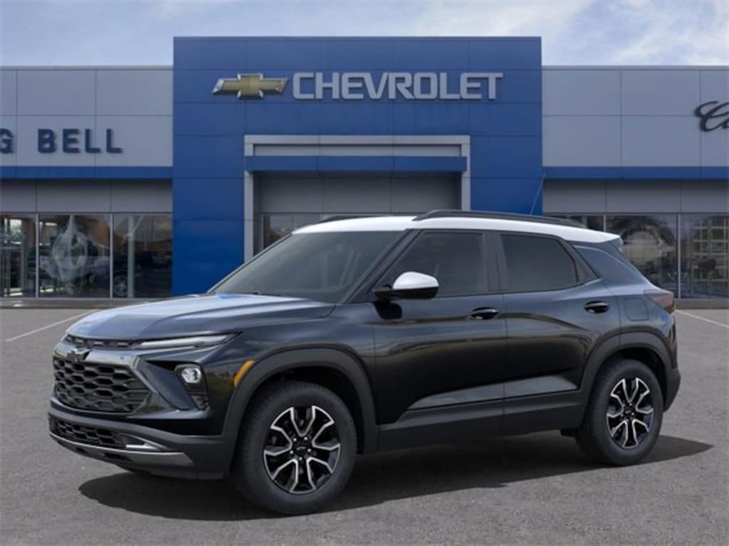 Mosaic Black Metallic 2025 Chevrolet TrailBlazer ACTIV FWD CVT 1.3L Ecotec Turbo DOHC SIDI w/VVT 1 Type-A & 1 Type-C USB Charging-Only Ports, 1 Type-A & 1 Type-C USB Ports, 120-Volt Power Outlet, 2-Way Power Driver Lumbar Seat Adjuster, 4-Way Manual Front Passenger Seat Adjuster, 4-Wheel Disc Brakes, 5.45 Final Drive Axle Ratio, 6 Speakers, 6-Speaker Audio System Feature, 8-Way Power Driver Seat Adjuster, ABS brakes, Adaptive Cruise & Sound Package, Adaptive Cruise Control, Air Conditioning, Alloy wheels, All-Weather Floor Mats, AM/FM radio: SiriusXM, Auto High-beam Headlights, Bose Premium 7-Speaker Audio System Feature, Brake assist, Bumpers: body-color, Cabin Humidity Sensor, Compass, Convenience Package, Delay-off headlights, Dr & Fr Passenger Illuminated Vanity Mirrors, Driver Confidence Package, Driver door bin, Driver vanity mirror, Dual front impact airbags, Dual front side impact airbags, Electronic Stability Control, Emergency communication system: OnStar and Chevrolet connected services capable, Evotex Seat Trim, Exterior Parking Camera Rear, Flat-Folding Front Passenger Seatback, Front anti-roll bar, Front Bucket Seats, Front Center Armrest, Front reading lights, Front wheel independent suspension, Fully automatic headlights, Hands Free Power Programmable Liftgate, Heated door mirrors, Heated Driver & Front Passenger Seats, Heated front seats, Heated steering wheel, Illuminated entry, Inside Rear-View Auto-Dimming Mirror, Knee airbag, Lane Change Alert w/Side Blind Zone Alert, Low tire pressure warning, Occupant sensing airbag, Overhead airbag, Overhead console, Panic alarm, Passenger door bin, Passenger vanity mirror, Power door mirrors, Power driver seat, Power steering, Power windows, Preferred Equipment Group 1SA, Radio data system, Radio: AM/FM Stereo Audio System, Rear Cross Traffic Alert, Rear Park Assist, Rear seat center armrest, Rear side impact airbag, Rear window defroster, Rear window wiper, Remote keyless entry, Ride & Handling Suspension, Security system, Single-Zone Automatic Climate Control, SiriusXM Trial Subscription, Speed control, Split folding rear seat, Spoiler, Steering wheel mounted audio controls, Summit White Two-Tone Roof, Tachometer, Telescoping steering wheel, Tilt steering wheel, Traction control, Trip computer, Variably intermittent wipers, Wheels: 17 High Gloss Black Machined Aluminum, Wireless Apple CarPlay/Android Auto, Wireless Charging.