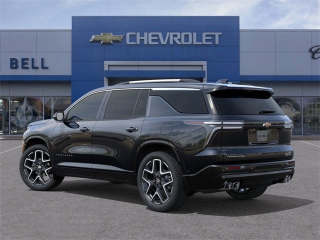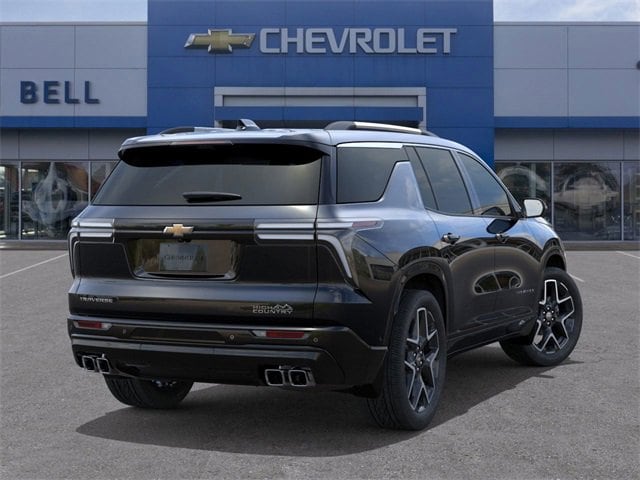 Mosaic Black Metallic 2025 Chevrolet Traverse High Country FWD 8-Speed Automatic 2.5L DOHC 12 Speakers, 1st & 2nd Row All-Weather Floor Liners (LPO), 3rd Row All-Weather Floor Liner (LPO), 3rd row seats: split-bench, 4-Wheel Disc Brakes, 6-Way Power Front Passenger Seat Adjuster, 8-Way Power Driver Seat Adjuster, ABS brakes, Air Conditioning, Alloy wheels, AM/FM radio: SiriusXM with 360L, Apple CarPlay/Android Auto, Auto High-beam Headlights, Auto tilt-away steering wheel, Auto-dimming door mirrors, Automatic temperature control, Bose Premium 12-Speaker Audio System Feature, Brake assist, Bumpers: body-color, Child-Seat-Sensing Airbag, Compass, Delay-off headlights, Driver 4-Way Power Lumbar Seat Adjuster, Driver door bin, Driver vanity mirror, Dual front impact airbags, Dual front side impact airbags, Electronic Stability Control, Emergency communication system: OnStar, Exterior Parking Camera Rear, Floor Liner Package (LPO), Four wheel independent suspension, Front & Rear Painted Splash Guards (LPO), Front anti-roll bar, Front Bucket Seats, Front Center Armrest, Front dual zone A/C, Front Passenger 4-Way Power Lumbar Seat Adjuster, Front reading lights, Fully automatic headlights, Garage door transmitter, Heated door mirrors, Heated front seats, Heated rear seats, Heated steering wheel, Illuminated entry, Low tire pressure warning, Memory seat, Navigation System, Occupant sensing airbag, Outside temperature display, Overhead airbag, Overhead console, Panic alarm, Passenger door bin, Passenger vanity mirror, Perforated Leather-Appointed Seat Trim, Power door mirrors, Power driver seat, Power Dual Glass Panoramic Sliding Sunroof, Power Liftgate, Power passenger seat, Power steering, Power windows, Preferred Equipment Group 1LZ, Radio data system, Radio: Audio System w/17.7 Diagonal Display, Rain sensing wipers, Rear air conditioning, Rear anti-roll bar, Rear reading lights, Rear window defroster, Rear window wiper, Remote keyless entry, Security system, SiriusXM w/360L Trial Subscription, Speed control, Speed-sensing steering, Spoiler, Steering wheel memory, Steering wheel mounted audio controls, Tachometer, Telescoping steering wheel, Tilt steering wheel, Traction control, Trip computer, Turn signal indicator mirrors, Variably intermittent wipers, Ventilated front seats, Voltmeter, Wheels: 22 High-Gloss Black Aluminum.