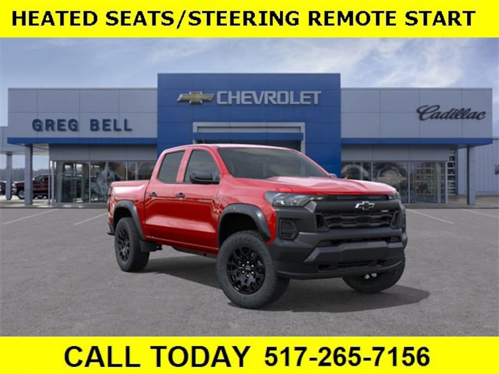 Radiant Red 2026 Chevrolet Colorado Trail Boss 4WD 8-Speed Automatic 2.7L I4 Turbocharged DOHC 16V LEV3-ULEV50 310hp 4WD, 3.42 Rear Axle Ratio, 4-Spoke Wrapped Steering Wheel, 4-Way Manual Passenger Seat Adjuster, 4-Wheel Disc Brakes, 6 Speakers, 6-Speaker Audio System Feature, 6-Way Manual Driver Seat Adjuster, 8-Way Power Driver Seat Adjuster, ABS brakes, Air Conditioning, Alloy wheels, AM/FM radio: SiriusXM with 360L, Apple CarPlay/Android Auto, Auto High-beam Headlights, Automatic Emergency Braking, Automatic temperature control, Black Spray-On Bedliner w/Chevrolet Logo, Brake assist, Chevy Safety Assist, Cloth Seat Trim, Compass, Delay-off headlights, Driver & Front Passenger Heated Seats, Driver door bin, Driver vanity mirror, Dual front impact airbags, Dual front side impact airbags, Electronic Stability Control, Emergency communication system: OnStar, Evotex Seat Trim, Following Distance Indicator, Forward Collision Alert, Front anti-roll bar, Front Bucket Seats, Front Center Armrest, Front dual zone A/C, Front Pedestrian & Bicyclist Braking, Front wheel independent suspension, Heated door mirrors, Heated Steering Wheel, Illuminated entry, IntelliBeam Automatic High Beam On/Off, Lane Keep Assist w/Lane Departure Warning, Low tire pressure warning, Navigation System, Occupant sensing airbag, Outside temperature display, Overhead airbag, Overhead console, Panic alarm, Passenger door bin, Passenger vanity mirror, Power door mirrors, Power Driver Lumbar Control Seat Adjuster, Power steering, Power windows, Preferred Equipment Group 0TR, Radio data system, Radio: 11.3 Diagonal Advanced Color LCD Display, Rear reading lights, Rear step bumper, Rear window defroster, Remote keyless entry, Remote Vehicle Starter System, Security system, SiriusXM w/360L Trial Subscription, Speed control, Speed-sensing steering, Split folding rear seat, Steering Wheel Mounted Audio Controls, Steering wheel mounted audio controls, Tachometer, Tilt steering wheel, Traction control, Trail Boss Convenience Package II, Trip computer, Variably intermittent wipers, Wheels: 18 x 8.5 Black High Gloss Aluminum, Wireless Phone Charging, Wireless Phone Projection, 4WD.