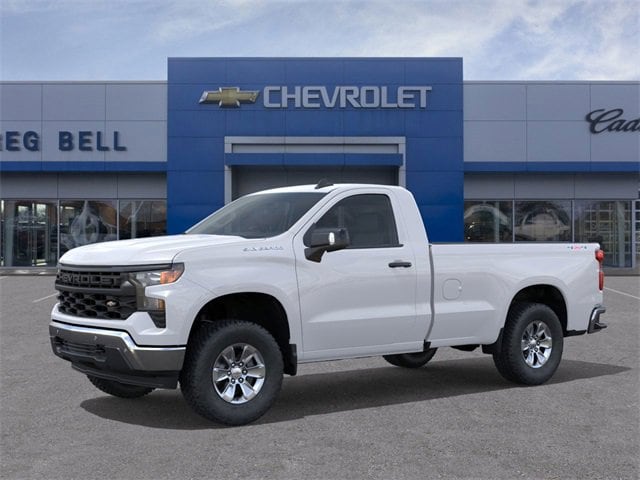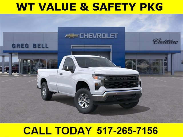 Summit White 2026 Chevrolet Silverado 1500 WT 4WD 8-Speed Automatic 2.7L I4 Turbocharged DOHC 16V LEV3-SULEV30 310hp 8-Speed Automatic, 4WD, Jet Black Vinyl, 120-Volt Bed Mounted Power Outlet, 120-Volt Interior Power Outlet, 2 Speakers, 2-Speaker Audio System, 220 Amp Alternator, 3.42 Rear Axle Ratio, 3.5 Monochromatic Display Driver Info Center, 4-Way Manual Driver Seat Adjuster, 4-Wheel Disc Brakes, 40/20/40 Front Split Bench Seat, ABS brakes, Air Conditioning, Apple CarPlay/Android Auto, Auto High-beam Headlights, Automatic Emergency Braking, Black (Semi-Gloss) Front Bumper, Black (Semi-Gloss) Rear Bumper, Bluetooth® For Phone, Brake assist, Chevytec Spray-On Black Bedliner, Compass, Deep-Tinted Glass, Delay-off headlights, Driver door bin, Dual front impact airbags, Dual front side impact airbags, Electric Rear-Window Defogger, Electronic Cruise Control, Electronic Stability Control, Emergency communication system: OnStar, EZ Lift Power Lock & Release Tailgate, Following Distance Indicator, Forward Collision Alert, Front anti-roll bar, Front Center Armrest w/Storage, Front Chrome Bumper, Front Frame-Mounted Black Recovery Hooks, Front Pedestrian Braking, Front reading lights, Front wheel independent suspension, Fully automatic headlights, HD Rear Vision Camera, Heated door mirrors, Heated Power-Adjustable Outside Mirrors, Heavy-Duty Air Filter, High Gloss Black Mirror Caps, Hitch Guidance, Illuminated entry, Inside Rear-View Mirror w/Tilt, IntelliBeam Automatic High Beam On/Off, Lane Change Alert w/Side Blind Zone Alert, Lane Keep Assist w/Lane Departure Warning, Locking Tailgate, Low tire pressure warning, Manual Tailgate Function w/No EZ Lift, Manual Tilt Wheel Steering Column, Occupant sensing airbag, OnStar Services Capable, Outside temperature display, Overhead airbag, Overhead console, Panic alarm, Passenger door bin, Passenger vanity mirror, Perimeter Lighting, Power door mirrors, Power Front Windows w/Driver Express Up/Down, Power Front Windows w/Passenger Express Down, Power steering, Power windows, Preferred Equipment Group 1WT, Premium audio system: Chevrolet Infotainment 3, Radio data system, Radio: Chevrolet Infotainment 3 System, Rear Chrome Bumper, Rear Cross Traffic Braking, Rear Pedestrian Alert, Rear reading lights, Rear step bumper, Remote Keyless Entry, Remote keyless entry, Rubberized-Vinyl Floor Covering, SiriusXM Delete, Solar Absorbing Tinted Glass, Speed control, Speed-sensing steering, Standard Suspension Package, Standard Tailgate, Tachometer, Teen Driver, Tilt steering wheel, Tire Pressure Monitoring System, Traction control, Trailering Package, Trip computer, Ultrasonic Front & Rear Park Assist, Variably intermittent wipers, Vinyl Seat Trim, Voltmeter, Wheels: 17 x 8 Bright Silver Painted Aluminum, Wheels: 17 x 8 Ultra Silver Painted Steel, Wi-Fi Hot Spot Capable, Work Truck Package, WT Convenience Package, WT Safety Package, WT Value Package, 8-Speed Automatic, 4WD, Jet Black Vinyl.
