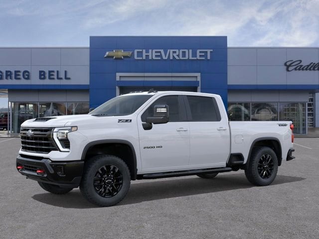 Summit White 2026 Chevrolet Silverado 2500HD LT 4WD 10-Speed Automatic 6.6L V8 10-Speed Automatic, 4WD, Black Leather, 10-Way Power Driver Seat Adjuster with Lumbar, 120-Volt Bed Mounted Power Outlet, 120-Volt Interior Power Outlet, 17 Machined Aluminum Wheels, 170 Amp Alternator, 1st and 2nd Row All-Weather Floor Liners, 2 Charge/Data USB Ports Inside Center Console, 2-Speed Electronic Shift Transfer Case, 220 Amp Alternator, 3.73 Rear Axle Ratio, 4-Way Manual Driver Seat Adjuster, 4-Wheel Disc Brakes, 4 Round Black Assist Steps, 6 Speakers, 720 Cold-Cranking Amps Heavy-Duty Battery, ABS brakes, Air Conditioning, Alloy wheels, AM/FM radio: SiriusXM with 360L, Animated LED Projector Headlamps, Apple CarPlay/Android Auto, Auto-Dimming Inside Rear-View Mirror, Bed View Camera with Two Trailer Camera Provisions, Black Chevytec Spray-on Bedliner, Black Grille Bar with Chevy Black Bow Tie, Black Mirror Caps, Bluetooth® For Phone, Brake assist, Chevrolet Connected Access Capable, Cloth Seat Trim, Color-Keyed Carpeting Floor Covering, Compass, Convenience Package, Convenience Package II, Deep-Tinted Glass, Delay-off headlights, Driver door bin, Driver vanity mirror, Dual front impact airbags, Dual front side impact airbags, Dual-Zone Automatic Climate Control, Durabed Pickup Bed, Electric Rear-Window Defogger, Electronic Stability Control, Emergency communication system: OnStar, EZ Lift Power Lock and Release Tailgate, Floor-Mounted Center Console, Front 40/20/40 Split-Bench Seats with Lockable Storage, Front anti-roll bar, Front Bucket Seats, Front Center Armrest w/Storage, Front Frame-Mounted Red Recovery Hooks, Front LED Fog Lamps, Front reading lights, Front Rubberized Vinyl Floor Mats, Front wheel independent suspension, Fully automatic headlights, Halogen Reflector Headlamps, HD Rear Vision Camera, HD Surround Vision, Heat Package, Heated and Auto-Dimming Vertical Trailering Mirrors, Heated Driver and Front Outboard Passenger Seating, Heated Steering Wheel, High Gloss Black Door Handles, High Gloss Black Front Bumper, High Gloss Black Mirror Caps, High Gloss Black Rear Bumper, Hill Descent Control, Hitch Guidance with Hitch View, Illuminated entry, in-Vehicle Trailering App System, Keyless Open and Start, Leather Package, LED Cargo Area Lighting, LED Smoked Amber Roof Marker Lamps, Manual Tilt and Telescoping Steering Column, Multi-Flex Tailgate, OnStar Services Capable, Outside temperature display, Overhead airbag, Overhead console, Panic alarm, Passenger door bin, Passenger vanity mirror, Power Door Locks, Power door mirrors, Power Sliding Rear Window with Defogger, Power windows, Preferred Equipment Group 1LT, Premium audio system: Chevrolet Infotainment 3 Premium, Push Button Start, Rear 60/40 Folding Bench Seat (folds Up), Rear Cross Traffic Alert, Rear reading lights, Rear Rubberized Vinyl Floor Mats, Rear step bumper, Rear Wheelhouse Liners, Remote keyless entry, Remote Start Package, Remote Vehicle Starter System, Safety Package, Snow Plow Prep/Camper Package, Speed control, Split folding rear seat, Standard Tailgate, Steering Wheel Audio Controls, Steering wheel mounted audio controls, Suspension Package, Tachometer, Tilt steering wheel, Traction control, Trail Boss Package, Trailer Camera Provisions, Trailer Side Blind Zone Alert, Trip computer, Turn signal indicator mirrors, Ultrasonic Front and Rear Park Assist, Unauthorized Entry Theft-Deterrent System, Universal Home Remote, Up-Level Rear Seat with Storage Package, Upfitter Switch Kit (5), Variably intermittent wipers, Voltmeter, Wheels: 20 High Gloss Black Painted, Wi-Fi Hotspot Capable, Wireless Charging, Wireless Phone Projection, Wrapped Steering Wheel, Z71 Off-Road Package, 10-Speed Automatic, 4WD, Black Leather.