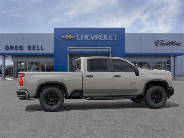 White Sands 2026 Chevrolet Silverado 2500HD ZR2 4WD 10-Speed Automatic 6.6L V8 10-Speed Automatic, 4WD, Jet Black/Graystone Leather, 170 Amp Alternator, 120-Volt Bed Mounted Power Outlet, 120-Volt Interior Power Outlet, 15 Diagonal Multicolor Head-Up Display, 220 Amp Alternator, 3 Years SiriusXM, 3.73 Rear Axle Ratio, 3 Round Black Tubular Off-Road Assist Steps, 4-Wheel Disc Brakes, 700 Cold-Cranking Amps/70 Amp-Hr Auxiliary Battery, 720 Cold-Cranking Amps Heavy-Duty Battery, ABS brakes, Air Conditioning, Alloy wheels, AM/FM radio: SiriusXM with 360L, Apple CarPlay/Android Auto, Automatic temperature control, Bed View Camera with Two Trailer Camera Provisions, Black Chevytec Spray-on Bedliner, Black Name Plates, Bluetooth® For Phone, Brake assist, Bumpers: chrome, Chevrolet Connected Access Capable, Compass, Dark Essentials Package, Deep-Tinted Glass, Driver Memory, Dual front impact airbags, Dual front side impact airbags, Durabed Pickup Bed, Electric Rear-Window Defogger, Electronic Stability Control, Emergency communication system: OnStar, EZ Lift Power Lock and Release Tailgate, Floor-Mounted Center Console, Front anti-roll bar, Front Bucket Seats, Front fog lights, Front LED Fog Lamps, Front Rain-Sensing Wipers, Front wheel independent suspension, Fully automatic headlights, Garage door transmitter, Gooseneck/5th Wheel Prep Package, Heads-Up Display, Heated door mirrors, Heated front seats, Heated rear seats, Heated steering wheel, High Gloss Black Mirror Caps, Hitch Guidance with Hitch View, Illuminated entry, in-Vehicle Trailering App System, Keyless Open and Start, LED Cargo Area Lighting, LED Smoked Amber Roof Marker Lamps, Low tire pressure warning, Manual Tilt and Telescoping Steering Column, Memory seat, Multi-Flex Tailgate, Occupant sensing airbag, OnStar Services Capable, Outside temperature display, Overhead airbag, Overhead console, Passenger door bin, Perforated Leather Seat Trim, Power Door Locks, Power driver seat, Power passenger seat, Power Sliding Rear Window with Defogger, Power steering, Power Sunroof, Power windows, Preferred Equipment Group 3LT, Premium audio system: Chevrolet Infotainment 3 Premium, Push Button Start, Rain sensing wipers, Rear Camera Mirror, Rear Cross Traffic Alert, Rear step bumper, Rear Wheelhouse Liners, Remote keyless entry, Remote Vehicle Starter System, Security system, SiriusXM with 360L Trial Subscription, Snow Plow Prep/Camper Package, Speed control, Speed-sensing steering, Steering Wheel Audio Controls, Steering wheel mounted audio controls, Tachometer, Technology Package, Telescoping steering wheel, Tilt steering wheel, Traction control, Trailer Camera Provisions, Trailer Tire Pressure Monitor Sensors, Trip computer, Turn signal indicator mirrors, Ultrasonic Front and Rear Park Assist, Unauthorized Entry Theft-Deterrent System, Universal Home Remote, Up-Level Rear Seat with Storage Package, Variably intermittent wipers, Ventilated front seats, Voltmeter, Wheels: 18 Gloss Black with Etched ZR2 Logo, Wi-Fi Hotspot Capable, Wireless Charging, Wireless Phone Projection, Wrapped Steering Wheel, ZR2 Suspension Package, 10-Speed Automatic, 4WD, Jet Black/Graystone Leather, 170 Amp Alternator.