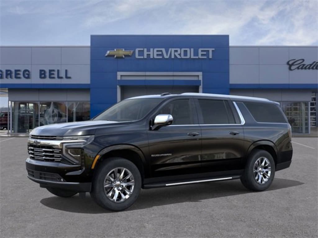 Black 2026 Chevrolet Suburban Premier 4WD 10-Speed Automatic with Overdrive EcoTec3 5.3L V8 10 Speakers, 2-Speed Active Electronic AutoTrac Transfer Case, 20 x 9 Polished Aluminum Wheels, 3.23 Rear Axle Ratio, 3rd Row 60/40 Power-Folding Split-Bench, 3rd row seats: split-bench, 4-Way Power Driver Lumbar Seat Adjuster, 4-Way Power Front Passenger Lumbar Seat Adjuster, 4-Wheel Disc Brakes, 8-Way Power Driver Seat Adjuster, 8-Way Power Front Passenger Seat Adjuster, ABS brakes, Adaptive suspension, Advanced Trailering Package, Air Conditioning, Alloy wheels, AM/FM radio: SiriusXM with 360L, Apple CarPlay/Android Auto, Auto High-beam Headlights, Auto-dimming door mirrors, Auto-Dimming Inside Rear-View Mirror, Auto-dimming Rear-View mirror, Auto-leveling suspension, Automatic temperature control, Blind Zone Steering Assist w/Trailering, Bose 10-Speaker Surround w/CenterPoint, Brake assist, Bright Front & Rear Door Sill Plates, Bumpers: body-color, Chrome Door Handles w/Body-Color Strip, Chrome Mirror Caps, Compass, Delay-off headlights, Driver door bin, Driver vanity mirror, Dual Exhaust System, Dual front impact airbags, Dual front side impact airbags, Dual-Pane Power Panoramic Sunroof, Electronic Stability Control, Emergency communication system: OnStar Services capable, Exterior Parking Camera Rear, Extra Capacity Cooling System, Four wheel independent suspension, Front & Rear Black Bowtie Emblems (LPO), Front anti-roll bar, Front Bucket Seats, Front Center Armrest, Front dual zone A/C, Front fog lights, Front LED Fog Lamps, Front reading lights, Fully automatic headlights, Garage door transmitter, Heated 2nd Row Outboard Seats, Heated door mirrors, Heated Driver & Front Passenger Seats, Heated front seats, Heated Power-Adjustable Outside Mirrors, Heated rear seats, Heated Steering Wheel, Heated steering wheel, Hill Descent Control, Hitch View w/Pan/Zoom Image Adjustment, Illuminated entry, Integrated Trailer Brake Controller, Interior Camera, LED Headlamps w/LED Daytime Running Lamps, LED Tail Lamps, Low tire pressure warning, Magnetic Ride Control Suspension, Max Trailering Package, Memory seat, Memory Settings, Navigation system: Google built-in compatibility (select service plan required, terms and limitations apply), Occupant sensing airbag, Outside temperature display, Overhead airbag, Overhead console, Panic alarm, Passenger door bin, Passenger vanity mirror, Perforated Heated & Ventilated Seats, Perforated Leather Seating Surfaces, Power door mirrors, Power driver seat, Power Liftgate, Power passenger seat, Power Release 2nd Row Bucket Seats, Power steering, Power Tilt & Telescopic Steering Column, Power windows, Power-Sliding Center Floor Console, Preferred Equipment Group 1LZ, Radio data system, Radio: 17.7 Diagonal Advanced Color LCD Display, Rain sensing wipers, Rear air conditioning, Rear anti-roll bar, Rear Power Liftgate, Rear reading lights, Rear window defroster, Rear window wiper, Remote keyless entry, Security system, SiriusXM w/360L Trial Subscription, Smart Trailer Integration Indicator, Speed control, Speed-sensing steering, Split folding rear seat, Spoiler, Steering wheel memory, Steering wheel mounted audio controls, Sun & Tow Package, Tachometer, Telescoping steering wheel, Tilt steering wheel, Traction control, Trip computer, Turn signal indicator mirrors, Universal Home Remote, Variably intermittent wipers, Ventilated front seats, Voltmeter, Wireless Apple CarPlay/Wireless Android Auto, Wireless Phone Charging.