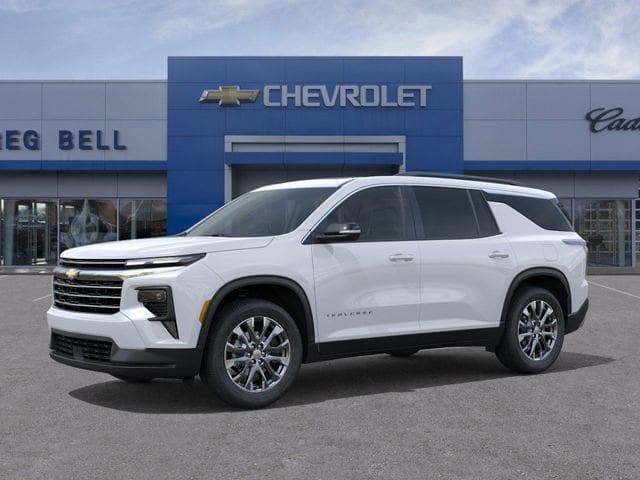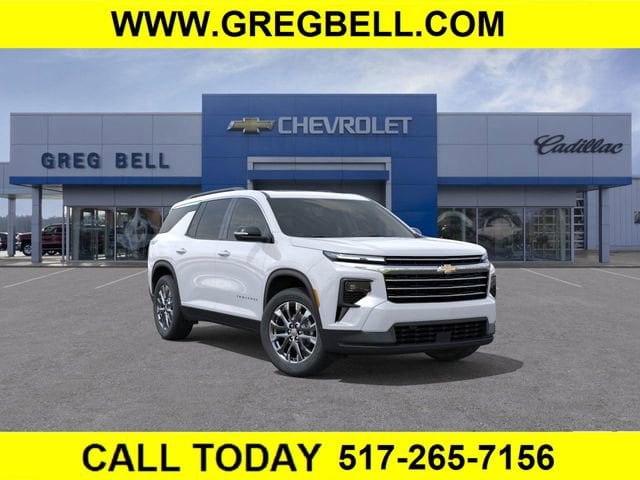 Summit White 2026 Chevrolet Traverse LT 1LT FWD 8-Speed Automatic 2.5L DOHC 1st and 2nd Row All-Weather Floor Liners, 3rd Row All-Weather Floor Liner, 3rd row seats: split-bench, 4-Way Manual Front Passenger Seat Adjuster, 4-Wheel Disc Brakes, 6 Speakers, 6-Speaker Audio System Feature, 8-Way Power Driver Seat Adjuster, ABS brakes, Air Conditioning, Alloy wheels, AM/FM radio: SiriusXM with 360L, Apple CarPlay/Android Auto, Auto High-beam Headlights, Automatic temperature control, Black Bowtie, Brake assist, Bumpers: body-color, Child-Seat-Sensing Airbag, Compass, Delay-off headlights, Driver Confidence Package, Driver door bin, Driver vanity mirror, Dual front impact airbags, Dual front side impact airbags, Electronic Stability Control, Emergency communication system: OnStar, Floor Liner Package, Four wheel independent suspension, Front anti-roll bar, Front Bucket Seats, Front Center Armrest, Front dual zone A/C, Front reading lights, Fully automatic headlights, HD Surround Vision, Heated door mirrors, Heated Driver and Front Passenger Seats, Heated front seats, Heated steering wheel, Illuminated entry, Integrated Cargo Liner, Key Card, Low tire pressure warning, Navigation System, Occupant sensing airbag, Outside temperature display, Overhead airbag, Overhead console, Panic alarm, Passenger door bin, Passenger vanity mirror, Power door mirrors, Power driver seat, Power Dual Glass Panoramic Sliding Sunroof, Power Liftgate, Power Outlet, Power steering, Power windows, Premium Cloth Seat Trim, Radio data system, Radio: : Audio System w/17.7 Diagonal Display, Rear air conditioning, Rear anti-roll bar, Rear Camera Mirror, Rear Pedestrian Alert, Rear reading lights, Rear window defroster, Rear window wiper, Remote keyless entry, Security system, SiriusXM with 360L Trial Subscription, Speed control, Speed-sensing steering, Spoiler, Steering wheel mounted audio controls, Sun and Wheel Package, Tachometer, Telescoping steering wheel, Tilt steering wheel, Traction control, Traffic Sign Recognition, Trip computer, Turn signal indicator mirrors, Variably intermittent wipers, Voltmeter, Wheels: 18 Grazen Metallic Machined-Face Aluminum, Wheels: 20 Carbon Flash Metallic Aluminum.
