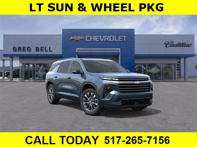Lakeshore Blue Metallic 2026 Chevrolet Traverse LT 1LT FWD 8-Speed Automatic 2.5L DOHC 1st & 2nd Row All-Weather Floor Liners (LPO), 3rd Row All-Weather Floor Liner (LPO), 3rd row seats: split-bench, 4-Way Manual Front Passenger Seat Adjuster, 4-Wheel Disc Brakes, 6 Speakers, 6-Speaker Audio System Feature, 8-Way Power Driver Seat Adjuster, ABS brakes, Air Conditioning, Alloy wheels, AM/FM radio: SiriusXM with 360L, Apple CarPlay/Android Auto, Auto High-beam Headlights, Automatic temperature control, Black Bowtie (LPO), Brake assist, Bumpers: body-color, Child-Seat-Sensing Airbag, Compass, Delay-off headlights, Driver Confidence Package, Driver door bin, Driver vanity mirror, Dual front impact airbags, Dual front side impact airbags, Electronic Stability Control, Emergency communication system: OnStar, Floor Liner Package (LPO), Four wheel independent suspension, Front anti-roll bar, Front Bucket Seats, Front Center Armrest, Front dual zone A/C, Front reading lights, Fully automatic headlights, HD Surround Vision, Heated door mirrors, Heated Driver & Front Passenger Seats, Heated front seats, Heated steering wheel, Illuminated entry, Integrated Cargo Liner (LPO), Key Card, Low tire pressure warning, Navigation System, Occupant sensing airbag, Outside temperature display, Overhead airbag, Overhead console, Panic alarm, Passenger door bin, Passenger vanity mirror, Power door mirrors, Power driver seat, Power Dual Glass Panoramic Sliding Sunroof, Power Liftgate, Power Outlet, Power steering, Power windows, Preferred Equipment Group 1LT, Premium Cloth Seat Trim, Radio data system, Radio: Audio System w/17.7 Diagonal Display, Rear air conditioning, Rear anti-roll bar, Rear Camera Mirror, Rear Pedestrian Alert, Rear reading lights, Rear window defroster, Rear window wiper, Remote keyless entry, Security system, SiriusXM w/360L Trial Subscription, Speed control, Speed-sensing steering, Spoiler, Steering wheel mounted audio controls, Sun & Wheel Package, Tachometer, Telescoping steering wheel, Tilt steering wheel, Traction control, Traffic Sign Recognition, Trip computer, Turn signal indicator mirrors, Variably intermittent wipers, Voltmeter, Wheels: 18 Grazen Metallic Machined-Face Aluminum, Wheels: 20 Carbon Flash Metallic Aluminum.