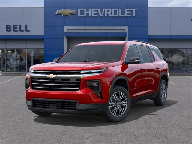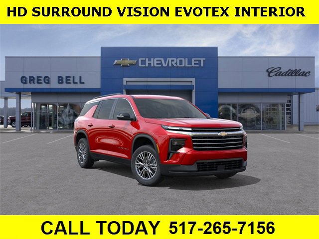Radiant Red Tintcoat 2026 Chevrolet Traverse LT 1LT FWD 8-Speed Automatic 2.5L DOHC 1st & 2nd Row All-Weather Floor Liners (LPO), 3rd Row All-Weather Floor Liner (LPO), 3rd row seats: split-bench, 4-Way Manual Front Passenger Seat Adjuster, 4-Wheel Disc Brakes, 6 Speakers, 6-Speaker Audio System Feature, 8-Way Power Driver Seat Adjuster, ABS brakes, Air Conditioning, Alloy wheels, AM/FM radio: SiriusXM with 360L, Apple CarPlay/Android Auto, Auto High-beam Headlights, Automatic temperature control, Brake assist, Bumpers: body-color, Child-Seat-Sensing Airbag, Compass, Delay-off headlights, Driver Confidence Package, Driver door bin, Driver vanity mirror, Dual front impact airbags, Dual front side impact airbags, Electronic Stability Control, Emergency communication system: OnStar, Floor Liner Package (LPO), Four wheel independent suspension, Front anti-roll bar, Front Bucket Seats, Front Center Armrest, Front dual zone A/C, Front reading lights, Fully automatic headlights, HD Surround Vision, Heated door mirrors, Heated Driver & Front Passenger Seats, Heated front seats, Heated steering wheel, Illuminated entry, Integrated Cargo Liner (LPO), Key Card, Low tire pressure warning, Navigation System, Occupant sensing airbag, Outside temperature display, Overhead airbag, Overhead console, Panic alarm, Passenger door bin, Passenger vanity mirror, Power door mirrors, Power driver seat, Power Liftgate, Power Outlet, Power steering, Power windows, Premium Cloth Seat Trim, Radio data system, Radio: Audio System w/17.7 Diagonal Display, Rear air conditioning, Rear anti-roll bar, Rear Camera Mirror, Rear Pedestrian Alert, Rear reading lights, Rear window defroster, Rear window wiper, Remote keyless entry, Security system, SiriusXM w/360L Trial Subscription, Speed control, Speed-sensing steering, Spoiler, Steering wheel mounted audio controls, Tachometer, Telescoping steering wheel, Tilt steering wheel, Traction control, Traffic Sign Recognition, Trip computer, Turn signal indicator mirrors, Variably intermittent wipers, Voltmeter, Wheels: 18 Grazen Metallic Machined-Face Aluminum.