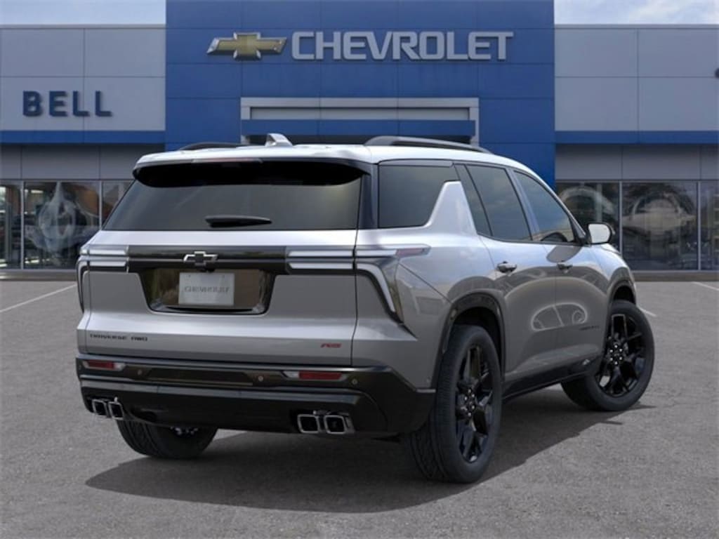 Sterling Gray Metallic 2026 Chevrolet Traverse RS AWD 8-Speed Automatic 2.5L DOHC AWD, 12 Speakers, 1st & 2nd Row All-Weather Floor Liners (LPO), 3rd Row All-Weather Floor Liner (LPO), 3rd row seats: split-bench, 4-Wheel Disc Brakes, 6-Way Power Front Passenger Seat Adjuster, 8-Way Power Driver Seat Adjuster, ABS brakes, Air Conditioning, Alloy wheels, AM/FM radio: SiriusXM with 360L, Apple CarPlay/Android Auto, Auto High-beam Headlights, Auto tilt-away steering wheel, Auto-dimming door mirrors, Automatic temperature control, Bose Premium 12-Speaker Audio System Feature, Brake assist, Bumpers: body-color, Child-Seat-Sensing Airbag, Compass, Delay-off headlights, Driver 4-Way Power Lumbar Seat Adjuster, Driver door bin, Driver vanity mirror, Dual front impact airbags, Dual front side impact airbags, Electronic Stability Control, Emergency communication system: OnStar, Exterior Parking Camera Rear, Floor Liner Package (LPO), Four wheel independent suspension, Front anti-roll bar, Front Bucket Seats, Front Center Armrest, Front dual zone A/C, Front Passenger 4-Way Power Lumbar Seat Adjuster, Front reading lights, Fully automatic headlights, Garage door transmitter, Heated door mirrors, Heated Driver & Front Passenger Seats, Heated front seats, Heated rear seats, Heated steering wheel, Illuminated entry, Integrated Cargo Liner (LPO), Low tire pressure warning, Memory seat, Navigation System, Occupant sensing airbag, Outside temperature display, Overhead airbag, Overhead console, Panic alarm, Passenger door bin, Passenger vanity mirror, Perforated Leather-Appointed Seat Trim, Power door mirrors, Power driver seat, Power Dual Glass Panoramic Sliding Sunroof, Power Liftgate, Power passenger seat, Power steering, Power windows, Preferred Equipment Group 2RS, Radio data system, Radio: Audio System w/17.7 Diagonal Display, Rain sensing wipers, Rear air conditioning, Rear anti-roll bar, Rear reading lights, Rear window defroster, Rear window wiper, Remote keyless entry, Security system, SiriusXM w/360L Trial Subscription, Speed control, Speed-sensing steering, Spoiler, Sport steering wheel, Steering wheel memory, Steering wheel mounted audio controls, Tachometer, Telescoping steering wheel, Tilt steering wheel, Traction control, Trip computer, Turn signal indicator mirrors, Variably intermittent wipers, Ventilated Driver & Front Passenger Seats, Ventilated front seats, Voltmeter, Wheels: 22 High Gloss Black Painted Aluminum, AWD.