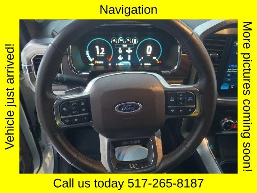 4WD, ABS brakes, Alloy wheels, Compass, Electronic Stability Control, Front dual zone A/C, Heated door mirrors, Heated front seats, Heated rear seats, Illuminated entry, Integrated Trailer Brake Controller, Low tire pressure warning, Remote keyless entry, Traction control, 20" Machined-Aluminum Wheels, 3.31 Axle Ratio, 4-Wheel Disc Brakes, 8 Speakers, Adjustable pedals, Air Conditioning, AM/FM radio: SiriusXM with 360L, Auto High-beam Headlights, Auto tilt-away steering wheel, Auto-dimming door mirrors, Auto-dimming Rear-View mirror, Automatic temperature control, Bed Utility Package, BoxLink, Brake assist, Bright Belt Moldings, Chrome Door Handles w/Body-Color Strap, Chrome Skull Caps on Exterior Mirrors, Class IV Trailer Hitch Receiver, Delay-off headlights, Driver door bin, Driver vanity mirror, Dual front impact airbags, Dual front side impact airbags, Emergency communication system: SYNC 4 911 Assist, Equipment Group 601A High, Exterior Parking Camera Rear, Front anti-roll bar, Front Bucket Seats, Front Center Armrest, Front fog lights, Front reading lights, Front wheel independent suspension, Fully automatic headlights, Garage door transmitter, Genuine wood console insert, Genuine wood dashboard insert, Genuine wood door panel insert, Heated steering wheel, King Ranch Chrome Appearance Package, King Ranch Leather Bucket Seats, LED Box Lighting, Memory seat, Multi-Contour Driver & Passenger Seats, Occupant sensing airbag, Outside temperature display, Overhead airbag, Overhead console, Panic alarm, Passenger door bin, Passenger vanity mirror, Pedal memory, Power door mirrors, Power driver seat, Power passenger seat, Power steering, Power Tailgate, Power windows, Power-Deployable Running Boards, Radio data system, Radio: B&O Sound System by Bang & Olufsen, Radio: B&O Unleashed Sound System by Bang & Olufsen, Rain sensing wipers, Rear reading lights, Rear seat center armrest, Rear step bumper, Rear window defroster, Security system, Speed control, Speed-sensing steering, Split folding rear seat, Steering wheel memory, Steering wheel mounted audio controls, SYNC 4 w/Enhanced Voice Recognition, Tachometer, Tailgate Step w/Tailgate Work Surface, Telescoping steering wheel, Tilt steering wheel, Trip computer, Turn signal indicator mirrors, Variably intermittent wipers, Ventilated front seats, Voltmeter, Wheels: 20" Chrome-Like PVD, Backup camera, Bluetooth, 2023 Ford F-150 King Ranch Star White Metallic Tri-Coat, All Wheel Drive, Leather Seating, Navigation, Heated Seats, Cooled Seats, Low miles super clean! KING RANCH, 4WD, ABS brakes, Alloy wheels, Compass, Electronic Stability Control, Front dual zone A/C, Heated door mirrors, Heated front seats, Heated rear seats, Illuminated entry, Integrated Trailer Brake Controller, Low tire pressure warning, Remote keyless entry, Traction control.