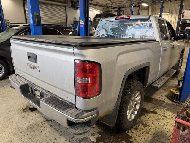 Sierra 1500 SLE, Double Cab, EcoTec3 4.3L V6 Flex Fuel, 4WD, Quicksilver Metallic, 10-Way Power Driver's Seat Adjuster, 110-Volt AC Power Outlet, 150 Amp Alternator, 3.42 Rear Axle Ratio, 4-Wheel Disc Brakes, 4.2 Diagonal Color Display Driver Info Center, 40/20/40 Front Split Bench Seat, 6 Speakers, ABS brakes, Air Conditioning, Alloy wheels, AM/FM radio: SiriusXM, Body Color Bodyside Moldings, Body Color Door Handles, Body Color Power-Adjustable Heated Outside Mirrors, Bodyside moldings, Brake assist, Bumpers: chrome, CD player, Chrome Front Bumper, Chrome Grille Surround, Chrome Rear Bumper, Cloth Seat Trim, Color-Keyed Carpeting w/Rubberized Vinyl Floor Mats, Compass, Deep-Tinted Glass, Delay-off headlights, Driver & Front Passenger Illuminated Vanity Mirrors, Driver door bin, Driver vanity mirror, Dual front impact airbags, Dual front side impact airbags, Dual-Zone Automatic Climate Control, Electric Rear-Window Defogger, Electronic Autotrac Transfer Case, Electronic Stability Control, Emergency communication system: OnStar Directions & Connections, Exterior Parking Camera Rear, EZ Lift & Lower Tailgate, Front anti-roll bar, Front Center Armrest w/Storage, Front Frame-Mounted Black Recovery Hooks, Front Halogen Fog Lamps, Front reading lights, Front wheel independent suspension, Fully automatic headlights, Heated door mirrors, Heavy Duty Suspension, Heavy-Duty Rear Locking Differential, Hill Descent Control, Illuminated entry, Leather Wrapped Steering Wheel w/Cruise Controls, LED Cargo Box Lighting, Low tire pressure warning, Manual Tilt Wheel Steering Column, Occupant sensing airbag, Off-Road Suspension Package, OnStar 6 Months Directions & Connections Plan, Outside temperature display, Overhead airbag, Overhead console, Panic alarm, Passenger door bin, Passenger vanity mirror, Power door mirrors, Power steering, Power windows, Power Windows w/Driver Express Up, Preferred Equipment Group 3SA, Premium audio system: IntelliLink, Radio data system, Radio: AM/FM Stereo w/8 Diagonal Color Touch Screen, Rear 60/40 Folding Bench Seat (Folds Up), Rear Bumper Cornersteps, Rear reading lights, Rear seat center armrest, Rear step bumper, Rear Vision Camera w/Dynamic Guide Lines, Rear Wheelhouse Liners, Remote Keyless Entry, Remote keyless entry, Remote Vehicle Starter System, Single Slot CD/MP3 Player, Single-Zone Air Conditioning, SiriusXM Satellite & HD Radio, SLE Value Package, Speed control, Speed-sensing steering, Split folding rear seat, Steering Wheel Audio Controls, Steering wheel mounted audio controls, Tachometer, Theft Deterrent System (Unauthorized Entry), Tilt steering wheel, Traction control, Trailering Equipment, Trip computer, Universal Home Remote, Variably intermittent wipers, Voltmeter, Wheels: 17 x 8 Bright Machined Aluminum, Wheels: 18 x 8.5 Bright Machined Aluminum, Sierra 1500 SLE, Double Cab, EcoTec3 4.3L V6 Flex Fuel, 4WD, Quicksilver Metallic. Quicksilver Metallic 2014 GMC Sierra 1500 SLE 4WD 6-Speed Automatic Electronic with Overdrive EcoTec3 4.3L V6 Flex Fuel