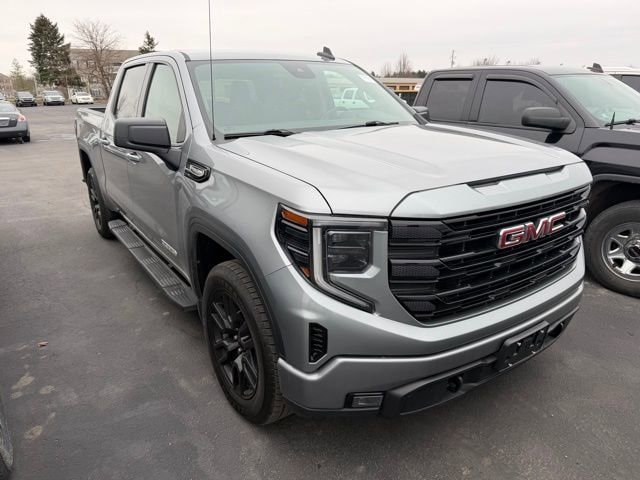 2023 GMC Sierra 1500 Elevation, 4D Crew Cab, EcoTec3 5.3L V8, 4WD, Sterling Metallic, 10-Way Power Driver Seat Adjuster w/Lumbar, 120-Volt Bed Mounted Power Outlet, 120-Volt Instrument Panel Power Outlet, 170 Amp Alternator, 2 Charge/Data USB Ports, 2 Charge/Data USB Ports Inside Center Console, 2 Type-C Charge-Only Rear USB Ports, 220 Amp Alternator, 3.23 Rear Axle Ratio, 4-Way Manual Passenger Seat Adjuster, 4-Wheel Disc Brakes, 6 Speakers, 6-Speaker Audio System Feature, 6 Rectangular Black Tubular Assist Steps, ABS brakes, Adaptive Cruise Control, Air Conditioning, Alloy wheels, AM/FM radio, Apple CarPlay/Android Auto, Auto High-beam Headlights, Auto-Locking Rear Differential, Automatic Emergency Braking, Automatic temperature control, Auxiliary External Transmission Oil Cooler, Body Color Header w/Gloss Black Mesh Grille Bars, Brake assist, Buckle to Drive, Bumpers: body-color, Cargo Tie-Downs (4) (LPO), Cloth Rear Seat w/Storage Package, Cloth Seat Trim, Color-Keyed Carpeting Floor Covering, Compass, Deep-Tinted Glass, Delay-off headlights, Driver door bin, Driver vanity mirror, Dual Exhaust System, Dual front impact airbags, Dual front side impact airbags, Electric Rear-Window Defogger, Electrical Steering Column Lock, Electronic Precision Shift, Electronic Stability Control, Emergency communication system: OnStar and GMC connected services capable, External Engine Oil Cooling, Floor-Mounted Center Console, Following Distance Indicator, Forward Collision Alert, Front 40/20/40 Split-Bench Seat, Front anti-roll bar, Front Bucket Seats, Front Center Armrest w/Storage, Front dual zone A/C, Front fog lights, Front Frame-Mounted Black Recovery Hooks, Front License Plate Kit, Front Pedestrian Braking, Front reading lights, Front Rubberized-Vinyl Floor Mats, Front wheel independent suspension, Fully automatic headlights, GMC Connected Access Capable, HD Rear Vision Camera, Heated door mirrors, Heated Driver & Front Outboard Passenger Seating, Heated front seats, Heated steering wheel, Heavy-Duty Air Filter, High Capacity Suspension Package, Hill Descent Control, Hitch Guidance, Hitch Guidance w/Hitch View, Illuminated entry, In-Vehicle Trailering App, Integrated Trailer Brake Controller, IntelliBeam Automatic High Beam On/Off, Keyless Open & Start, Lane Keep Assist w/Lane Departure Warning, LED Cargo Area Lighting, Low tire pressure warning, Manual Tilt-Wheel & Telescoping Steering Column, Not Equipped w/Steering Column Lock, Not Equipped with GMC MultiPro Tailgate, Occupant sensing airbag, Off-Road Suspension, OnStar & GMC Connected Services Capable, Outside temperature display, Overhead airbag, Overhead console, Panic alarm, Passenger door bin, Passenger vanity mirror, Power Door Locks, Power door mirrors, Power driver seat, Power Front Windows w/Driver Express Up/Down, Power Front Windows w/Passenger Express Down, Power Rear Windows w/Express Down, Power Sliding Rear Window w/Rear Defogger, Power steering, Power windows, Preferred Equipment Group 3SB, Preferred Package, Premium audio system: GMC Infotainment System, Premium Bose 7-Speaker Sound System, Push Button Start, Radio data system, Radio: Premium GMC Infotainment Audio System, Rear reading lights, Rear Rubberized-Vinyl Floor Mats, Rear seat center armrest, Rear step bumper, Rear Wheelhouse Liners, Rear window defroster, Remote keyless entry, Remote Vehicle Starter System, Security system, SiriusXM w/360L, Speed control, Speed-sensing steering, Split folding rear seat, Spray-On Pickup Bed Liner w/GMC Logo, Standard Tailgate, Steering Wheel Audio Controls, Steering wheel mounted audio controls, Tachometer, Telescoping steering wheel, Theft Deterrent System (Unauthorized Entry), Tilt steering wheel, Traction control, Trailering Package, Trip computer, Universal Home Remote, Variably intermittent wipers, Voltmeter, Wheels: 20 High Gloss Black Painted Aluminum, Wi-Fi Hotspot Capable, Wireless Charging, Wireless Phone Proje